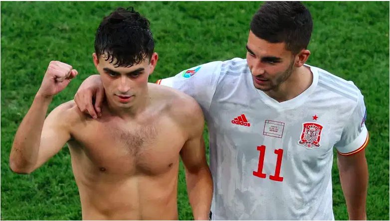 España: Unai Simón; Azpilicueta, Eric García, Laporte, Alba; Koke, Busquets, Pedri; Sarabia, Morata, Ferran Torres.