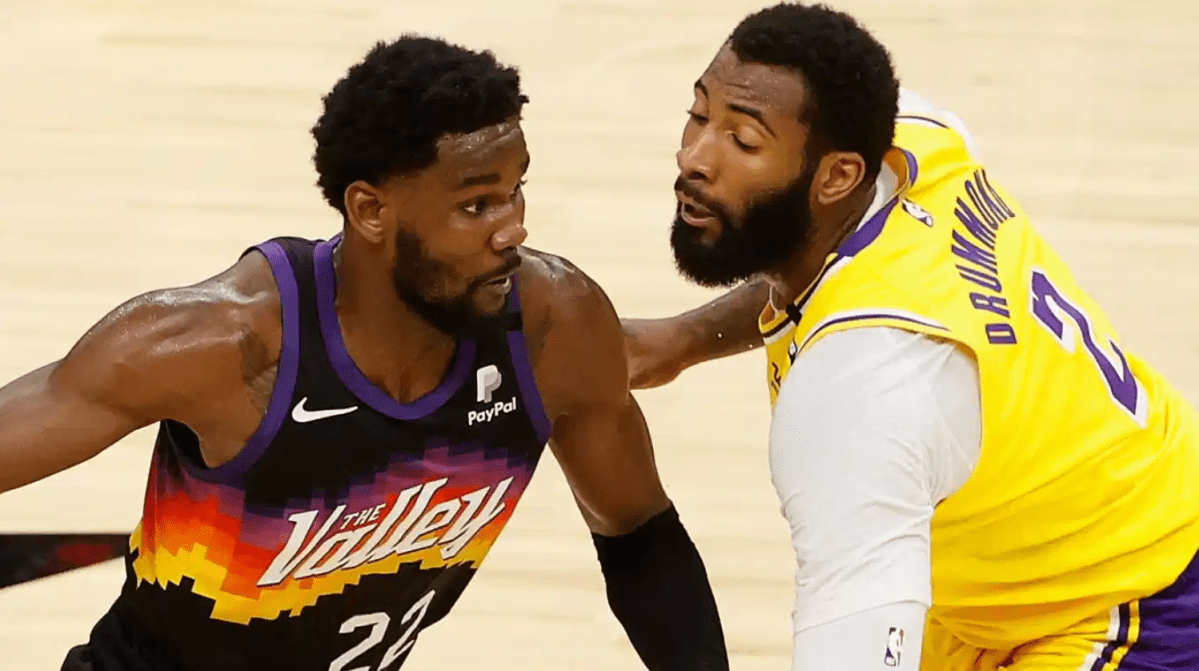 Deandre Ayton de los Phoenix Suns contra Andre Drummond de los Lakers