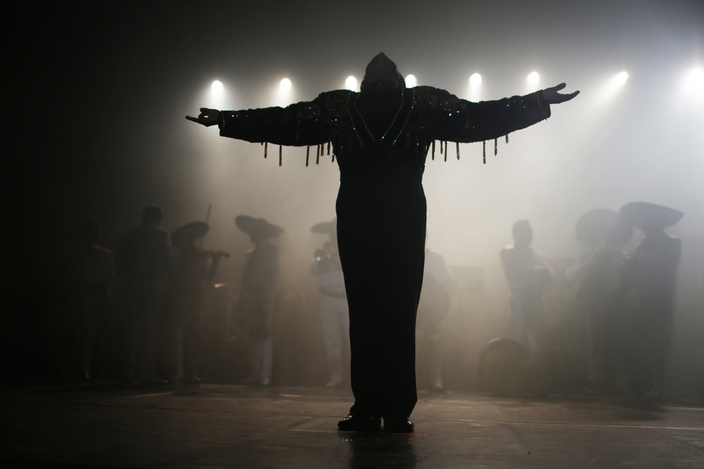 En la serie, Román recrea el momento en el que Juan Gabriel está cantando la canción Hasta que te conocí en el palacio de Bellas Artes y de repente se queda callado, porque ve entre el público a su mamá, quien ya estaba muerta.