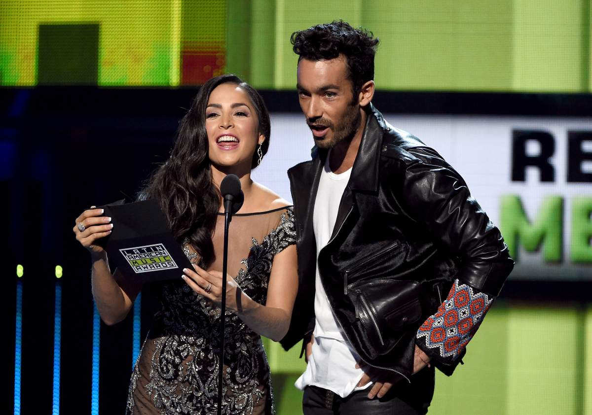 Carmen Villalobos y Aaron Díaz presentan el premio al ‘Artista Favorito de Música Regional Mexicana, en los ‘Latin American Music Awards’ 2015. (Getty Images)