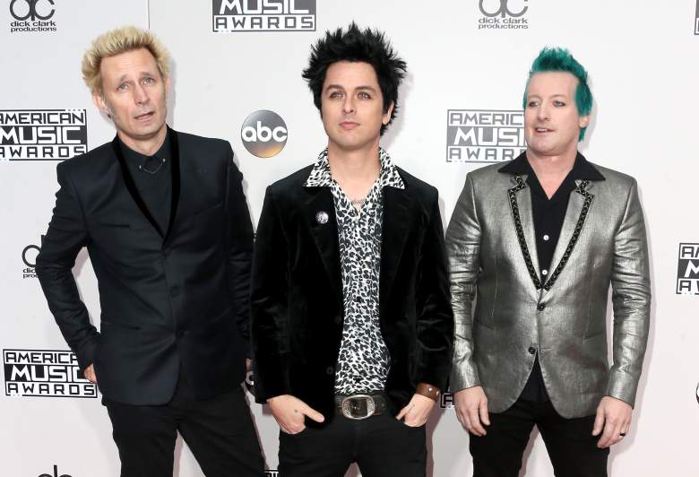 Mike Dirnt (izq. a der.), Billie Joe Armstrong y Tré Cool de Green Day en la alfombra roja de los American Music Awards 2016. (Getty Images)
