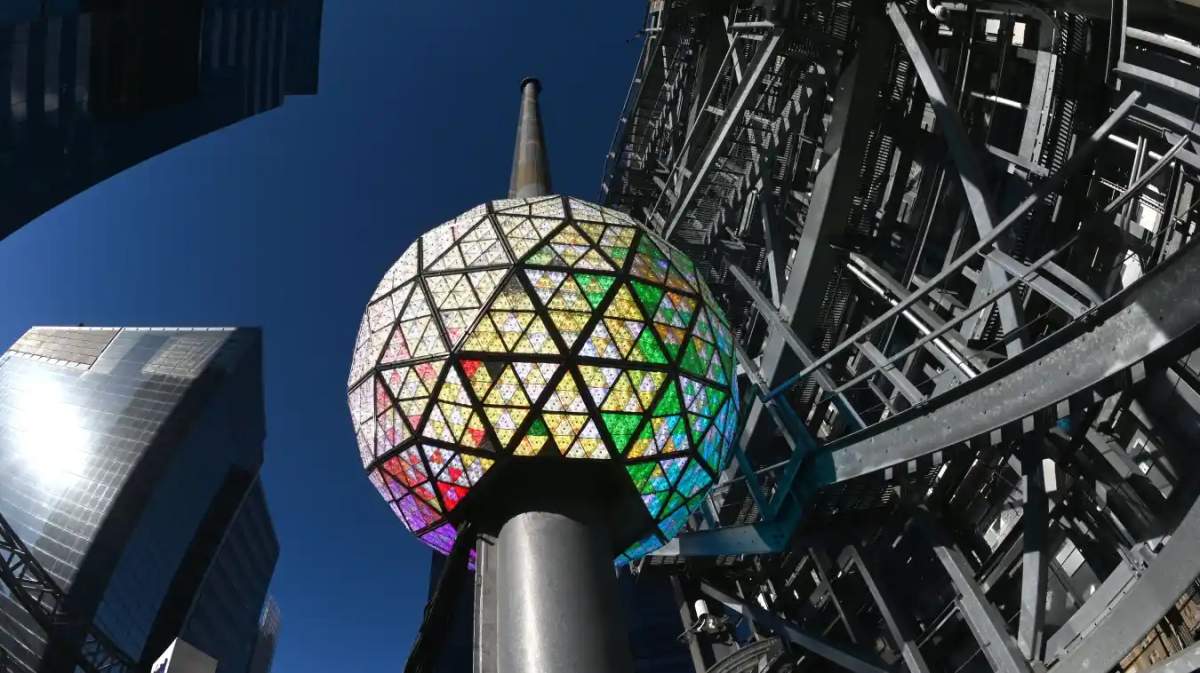 El video de arriba, proporcionado por EarthCam, muestra un lapso de tiempo de la construcción de Times Square en previsión de la celebración de 2022-2023 en Nueva York.