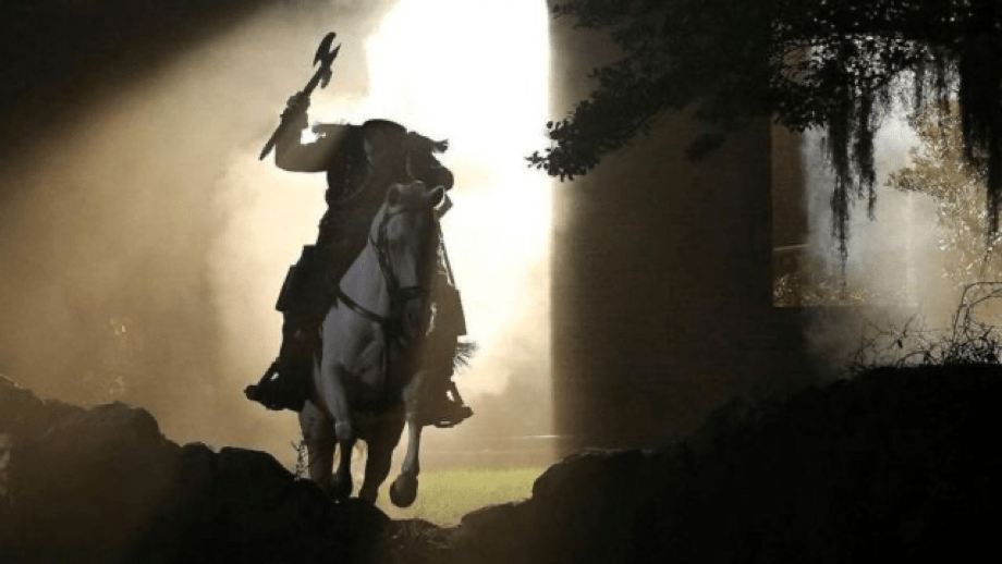 En ella se dice que este jinete anteriormente fue un soldado acusado de traición, condenado y decapitado, justo antes de que esto ocurriera el hombre juró que se vengaría. Desde ese momento, cada Halloween aparece, cuando llega la noche, montado en su caballo negro y con una calabaza en llamas, esperando a su víctima para quitarle la cabeza.