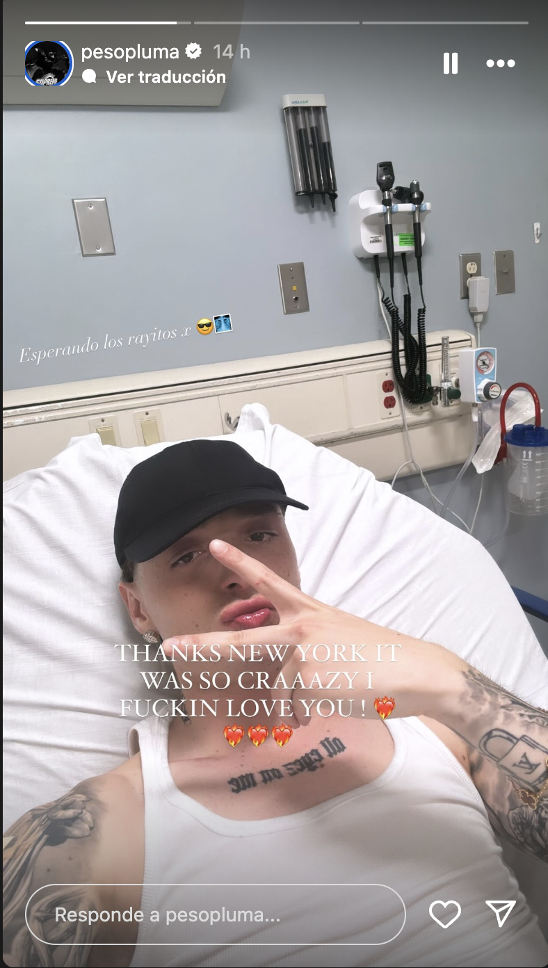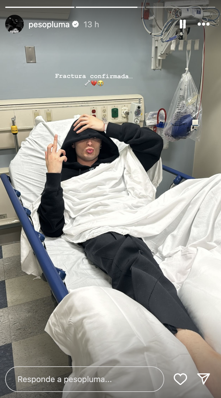 Tras finalizado el concierto y horas después del mismo, el mismo Peso Plumo compartió por medio de su cuenta de Instagram, con sus más de 14 millones de seguidores, que se encontraba en el hospital, debido a que se había confirmado que tenía una fractura.