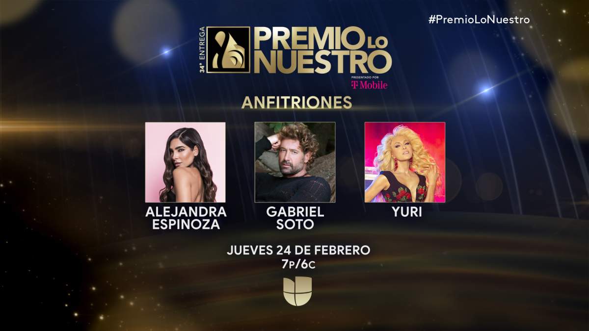 Alejandra Espinoza, Yuri, David Bisbal y Gabriel Soto serán los presentadores de Premio Lo Nuestro 2022, una de las ceremonias de premiación más aclamadas por la audiencia de habla hispana en los Estados Unidos.