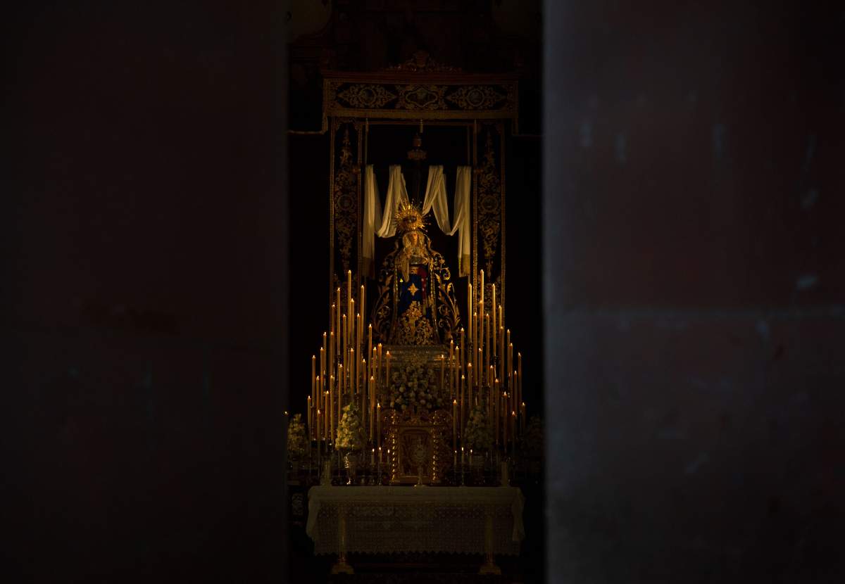 La Imagen de la Virgen "Nuestra Sra de la Soledad" se prepara para la Semana Santa en la iglesia de San Martín de Tours, en Bollullos de La Mitacion, cerca de Sevilla, el 31 de marzo de 2022.