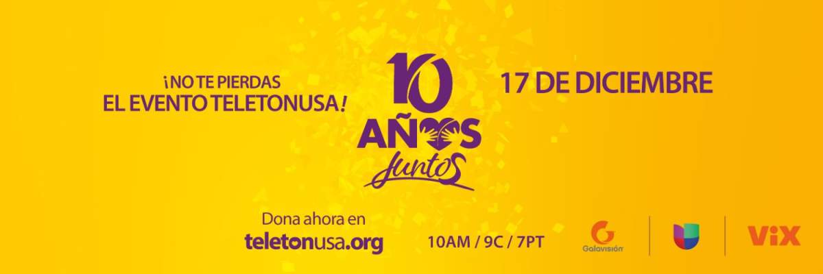 Acompáñanos el sábado 17 de diciembre por Univision, Galavisión y ViX a partir de las 10 AM / 9 C / 7 PT. TeletonUSA, ¡diez años juntos!