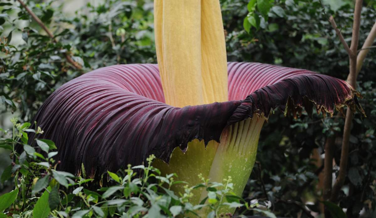 La planta, que lleva el nombre científico de amorphophallus titanum, produce una de las flores más grandes del mundo que llega a medir más de 2 metros de altura. Lo más curiosos es que al florecer desprende un putrefacto olor a carne podrida, tan horrible que es casi imposible permanecer cerca de ella por mucho tiempo. Pero eso si, tiene muchos fanáticos.