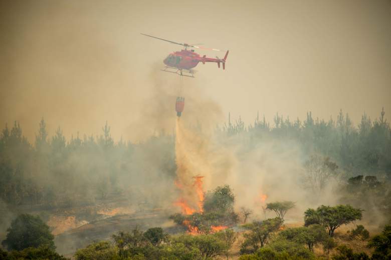 Un helicoptero de bombero trata de apagar el fuego en Chile, el 24 de enero de 2017. (Getty)