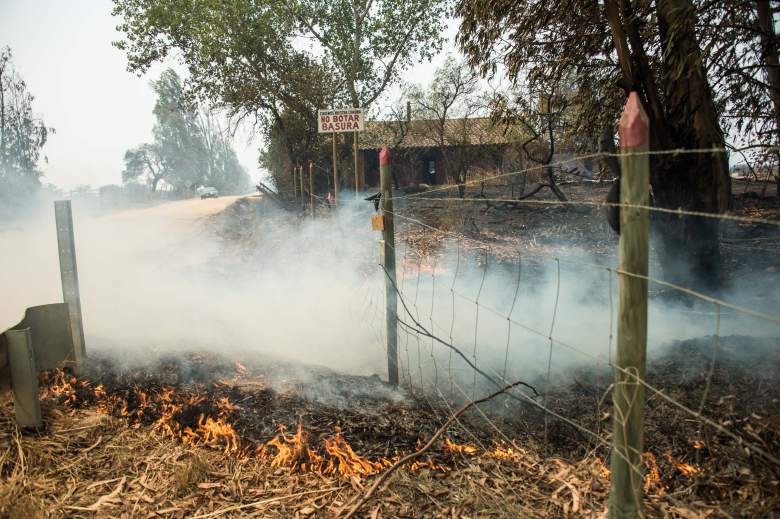 Foto tomada de uno de los incendios forestales en Litueche, en Santiago, el 24 de enro de 2017. (Getty)
