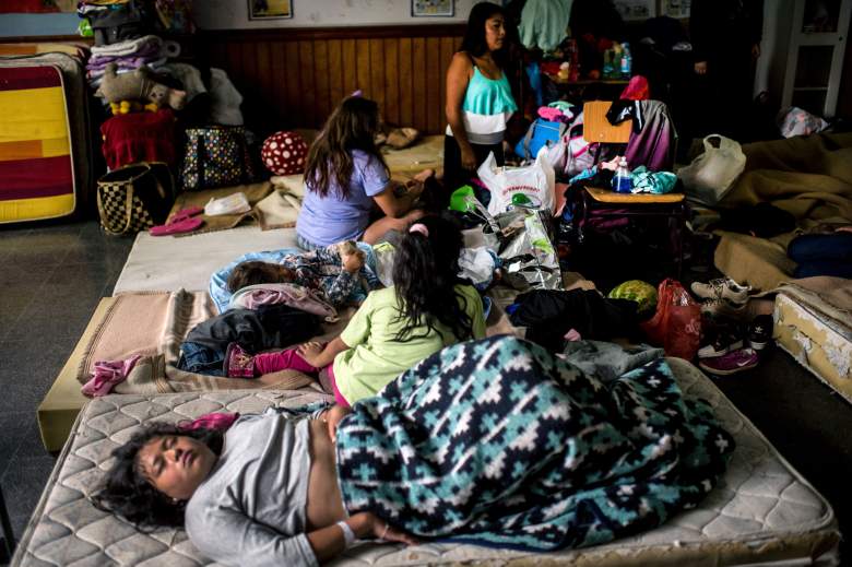 Residentes de Santa Olga en un refugio en el sur de Santiago después que el incendio forestal arraso por su pueblo, 27 de enero de 2017. (Getty)