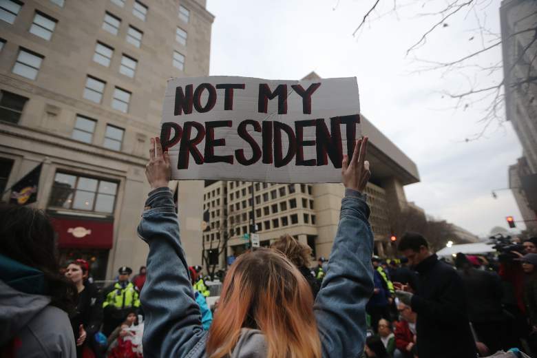 Manifestantes en Filadelfia antes de la Inauguración de Trump. (Getty)