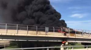 El puente de Harbor en Corpus Christi, Texas, fue cerrado por las autoridades el jueves debido a un gran incendio.