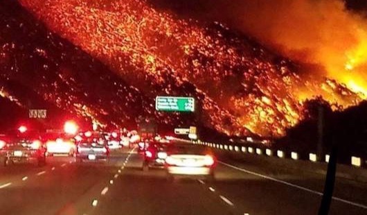 Las impactantes imágenes del miércoles mostraron la escena mientras los conductores se dirigían a la autopista 405 en el área de Los Ángeles. En el cual se puede ver un incendio forestal masivo, llamado fuego Skirball, ha sobrepasado parte del área cerca de la carretera y ha amenazado a los residentes cercanos.