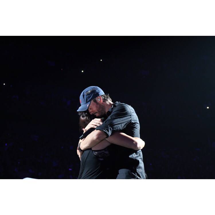 Enrique Iglesias abrazando a una fan en uno de sus conciertos.