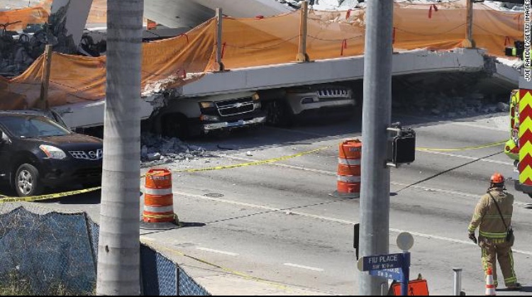 El puente se cayó sobre seis carriles de Tamiami Trail, durante la hora pico, aplastando a varios automóviles y matando a un número aún no muy claro de personas. La policía en la escena dijo que al menos seis personas podrían estar muertas. La Patrulla de Carreteras de Florida informó que cinco o seis autos quedaron atrapados debajo del puente.