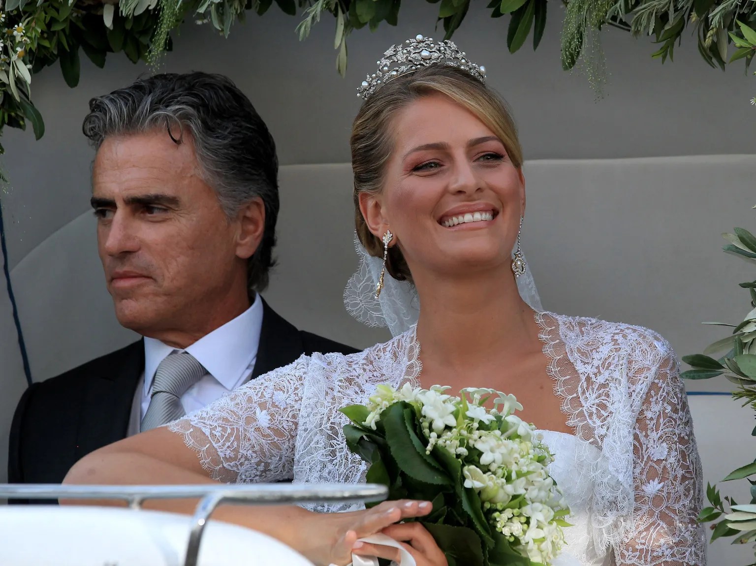 GettyTatiana Blatnik y su padre Atilio Brillembourg llegan a la Catedral de Ayios Nikolaos (San Nicolás) para su boda con el Príncipe Nikolaos de Grecia el 25 de agosto de 2010 en Spetses, Grecia.