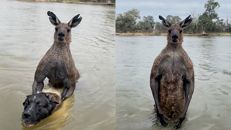 Un hombre australiano experto en artes marciales protagonizo una fuerte pelea con un canguro que quiso ahogar a su perro en el rio Murray del estado Victoria, reportó TMZ.