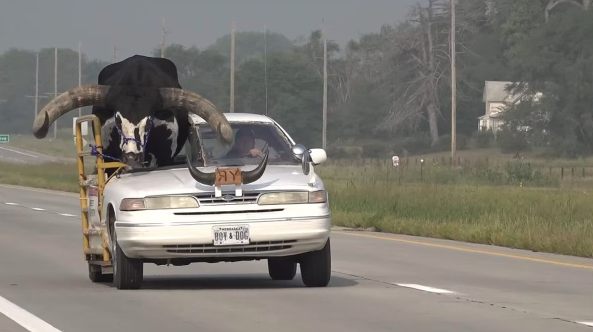 Tierno y asombroso fue el momento en que un conductor de Nebraska en Estados Unidos, fue sorprendido llevando como copiloto a su mascota “Howdy Doody”, un toro Watusi de 450 kilos de peso. El peculiar momento quedó captado en imágenes de video, las cuales puede ver a lo largo de esta publicación.