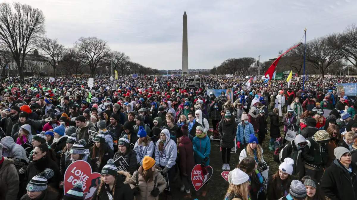 GettyActivistas pro-vida participan en la 49.ª Marcha por la Vida anual, el 21 de enero de 2022, en Washington, DC.
