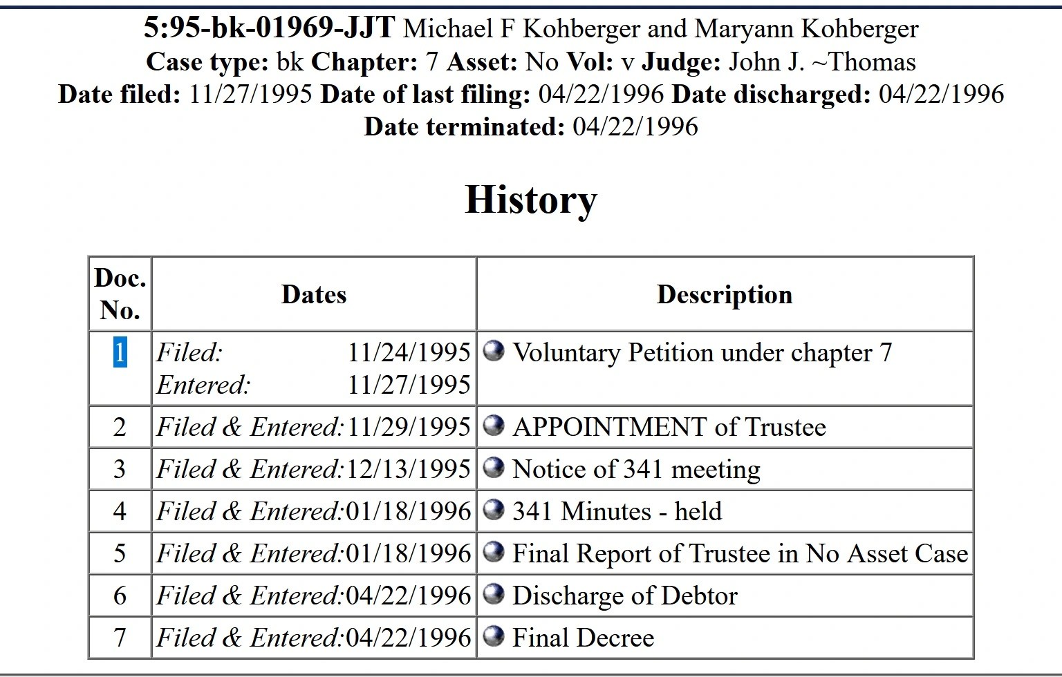 PacerDeclaración de quiebra de Michael y MaryAnn Kohberger.