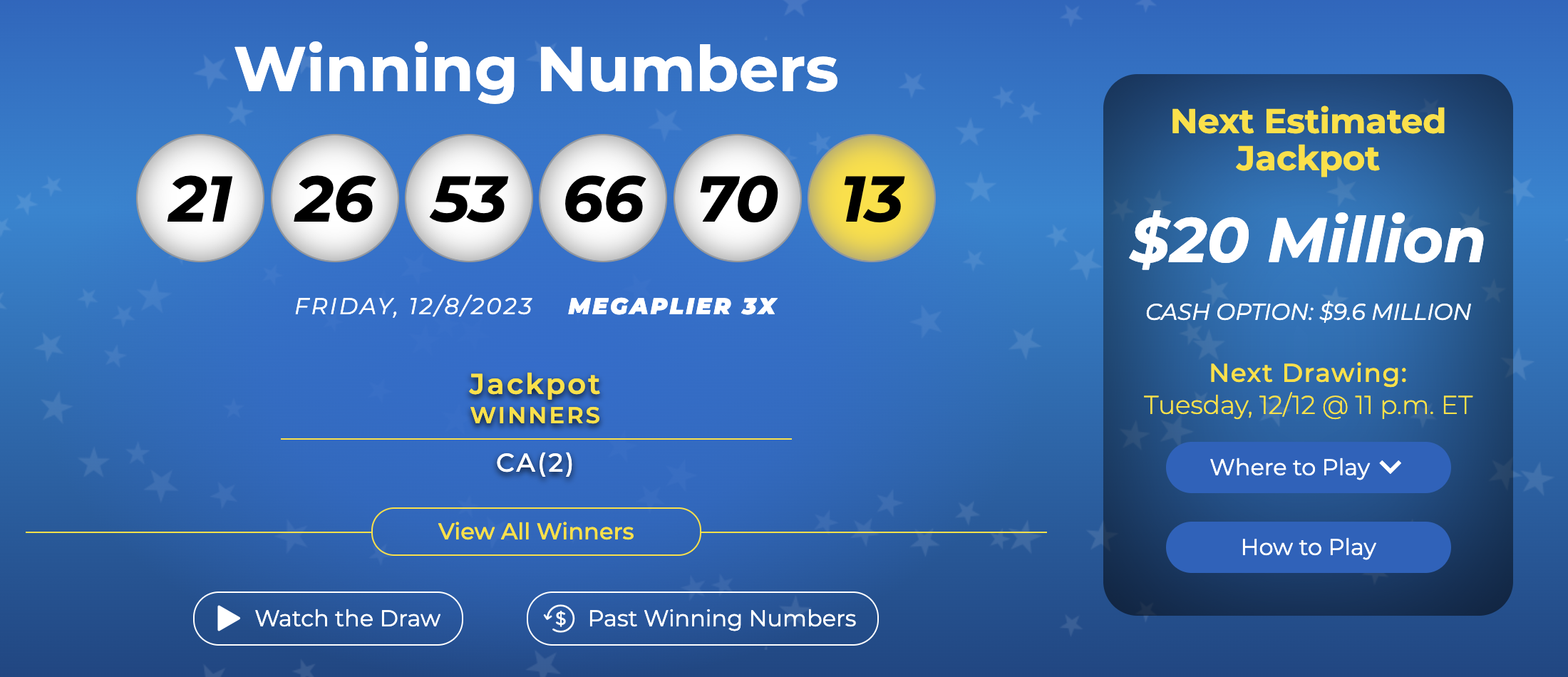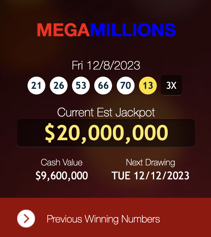 Mega Millions actualizó su sitio web, informando que alguien había ganado y el Mega Millions comenzará de nuevo en $20 millones el martes 12 de diciembre de 2023.