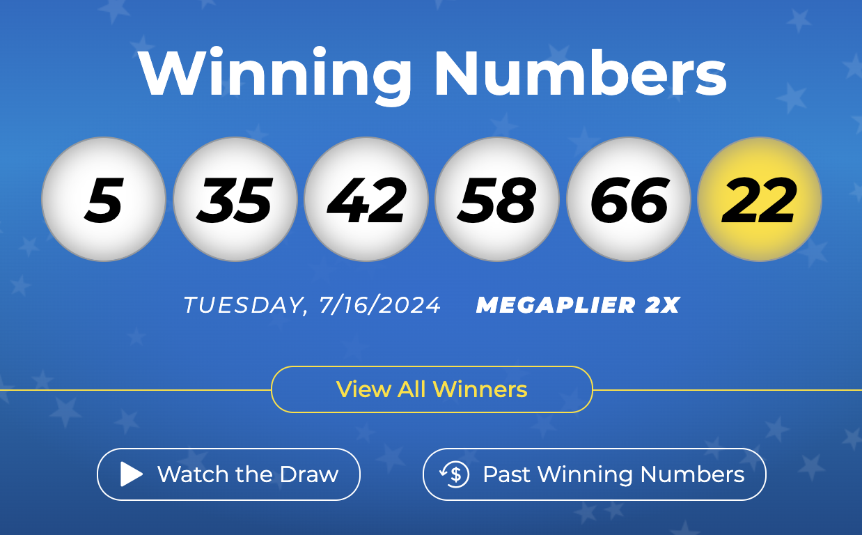 Los números ganadores del martes 16 de julio de 2024 fueron 5,35,42,58,66 y el Mega Ball 22.