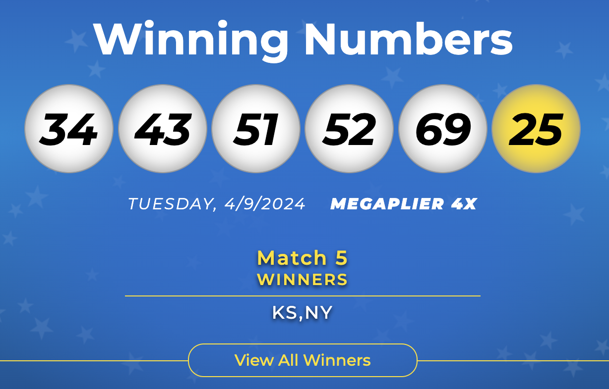 Los números ganadores del martes 9 de abril de 2024 fueron 34,43,51,52,69 y el Mega Ball 25.