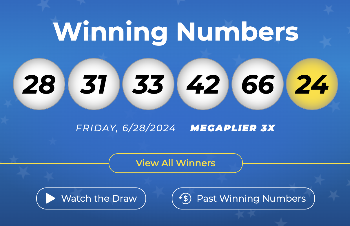 Los números ganadores del viernes 28 de junio de 2024 fueron 28,31,33,42,66 y el Mega Ball 24.