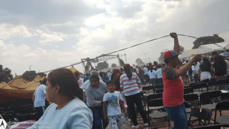Otro incidente por causa de los fuertes vientos se presentó en México este domingo 26 de mayo durante la celebración de un mitin político del candidato por el partido oficialista Morena a la Alcaldía de Xonacatlán, Alfredo González, de acuerdo con Univision.