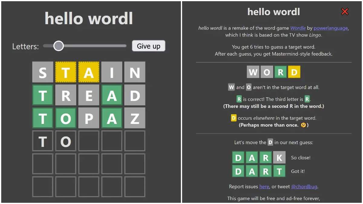 Es bastante simple. “Adivina la PALABRA en 6 intentos. Cada intento debe ser una palabra válida de 5 letras. Pulse el botón Intro para enviar. Después de cada intento, el color de los mosaicos cambiará para mostrar lo cerca que estuvo de la palabra correcta”, dice el sitio web.