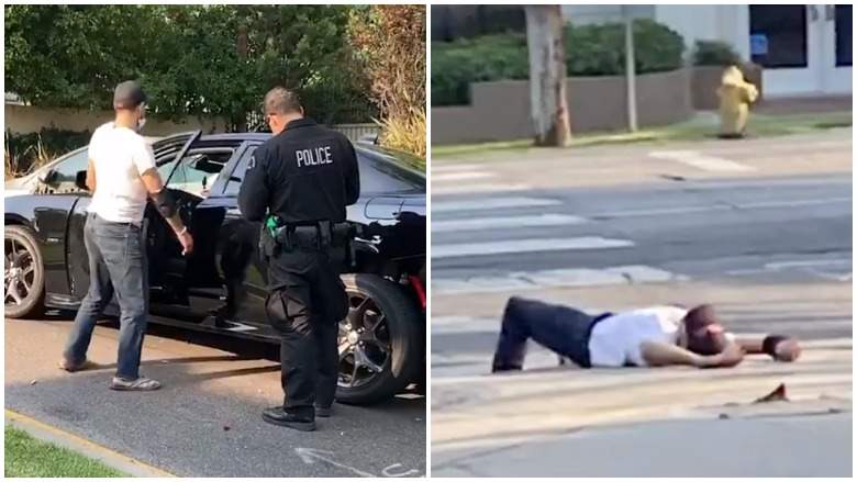 El vídeo, compartido en Instagram por Katy Wicker, que lo presenció, muestra al conductor intentando volver a su vehículo con las llaves en la mano, sin importarle mucho la presencia de los oficiales de policía de Los Angeles.